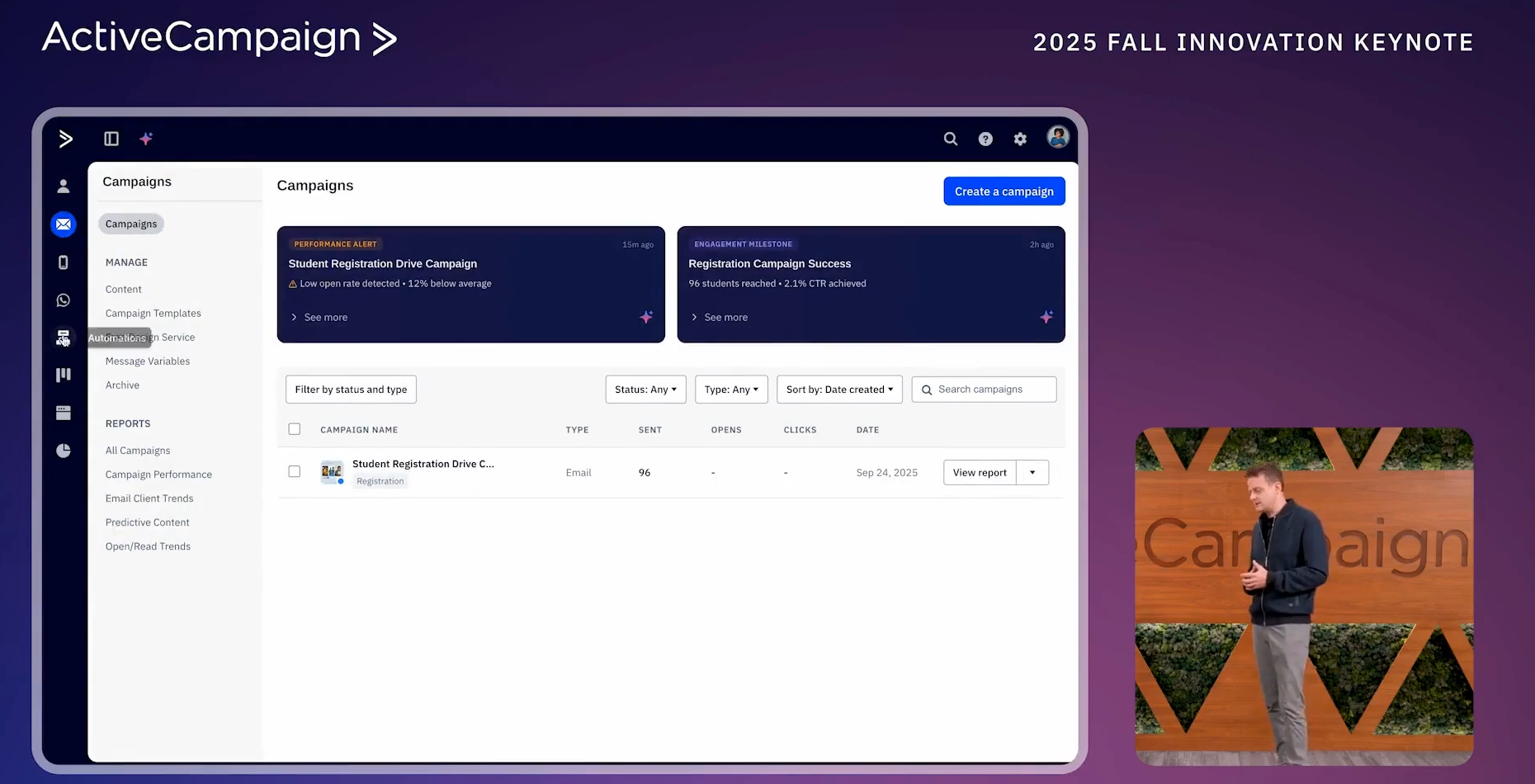 Am 30. September 2025 fand die zweite Ausgabe von ActiveCampaigns "Innovations Keynote" statt. Die Keynote hatte eine Laufzeit von etwas mehr als 30 Minuten und einen ganz klaren Fokus: Die neue ActiveAI-Funktion.