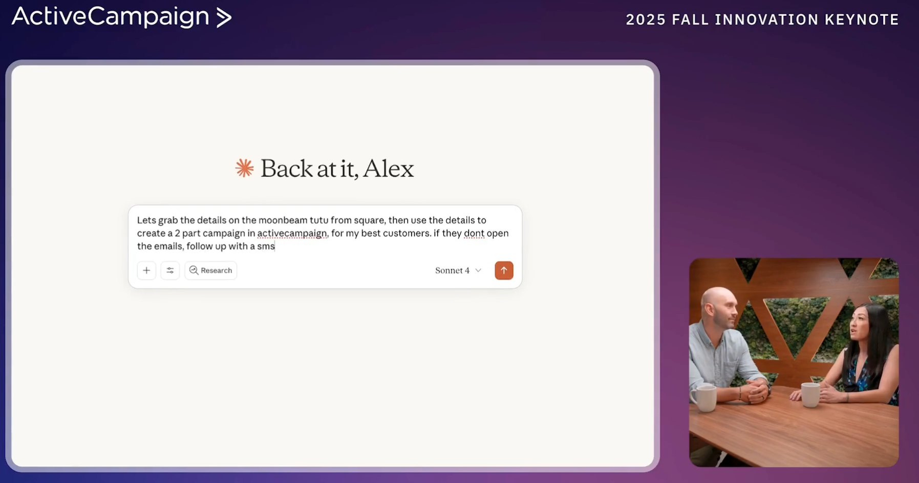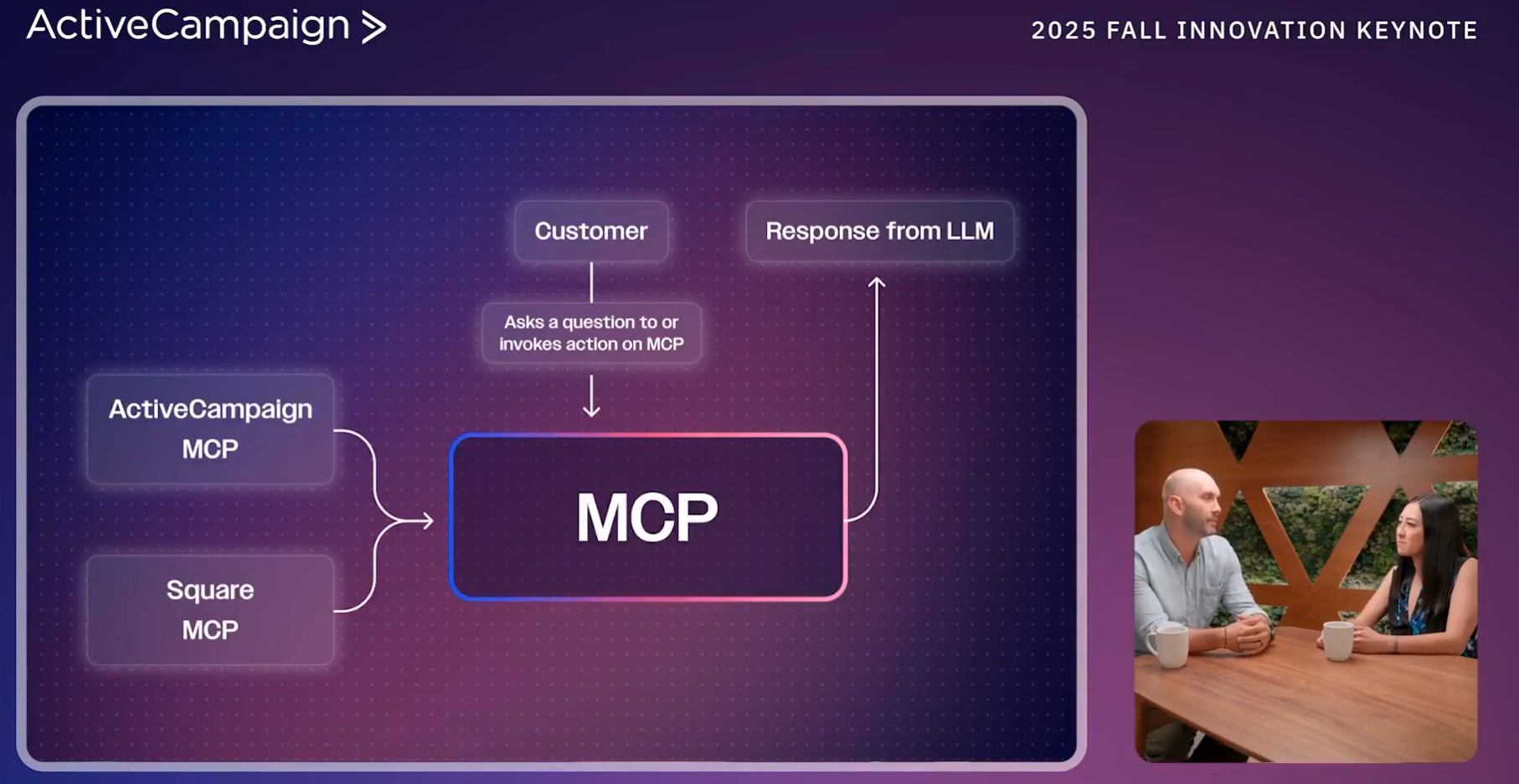 Anschließend wird zu Alex Murrey (Principal Product Manager) und Gwen Sioson (Senior Strategic Partnerships Manager) geschaltet. Im Dialog gehen sie einige Anwendungsfälle des autonomen Marketings durch. Dies ist beispielsweise der MCP-Server von ActiveCampaign.